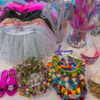 Munis-toi de tes plus beaux atours : barrettes à paillettes, colliers colorés, couronnes de couleurs, tutus à froufrous, bagues bling bling, chaussons de princesse, déguisements de super héros et de super héroïnes. Sois une star, tout simplement.